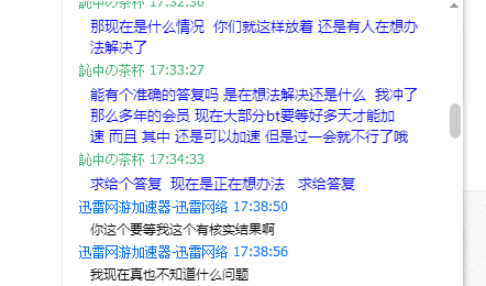 迅雷客服相当于默认迅雷论坛里有不少都在说迅雷BUG 迅雷贴吧都不让我发帖一发就删除 迅雷官方论坛我了反应的帖子居然快一周了也在审核中 迅雷有不少都说bt现在几乎无法加速 都是迅雷也不说明也不处理 我上个月就打过客服