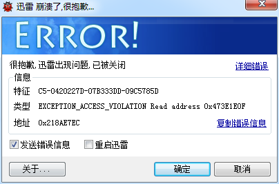 迅雷极速版一直崩溃,之前2小时一次,现在10分钟一次