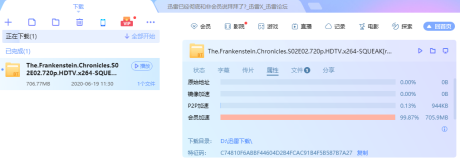 我从人人下这个片子720p都是会员加速,p2p才过来1MB
