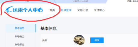 在迅雷个人中心是显示的