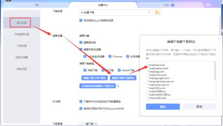 您好,关于您反馈的问题,在不接管下载网站内去掉您需要接管下载的网站即可,详细操作请看截图。