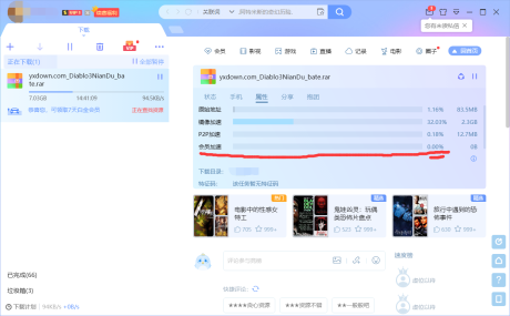 这就是下载了一晚上的成果,会员加速一晚上的时间全是0,一直都是在寻找资源,昨天中午的时候试用会员加速的时候倒是挺高的,而且开了会员之后一直都是100kb/m以下,这……唉,迅雷真的是