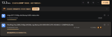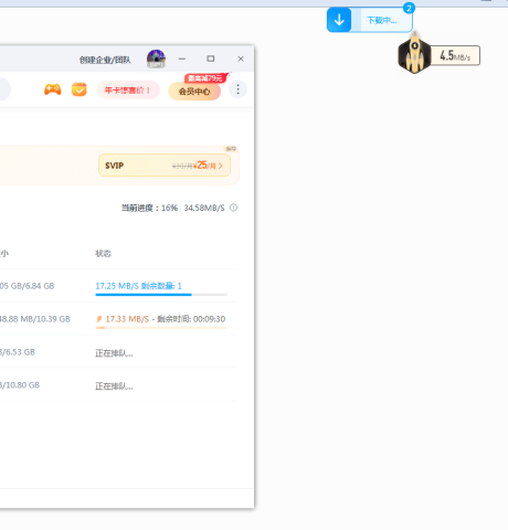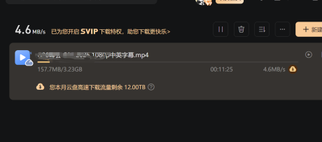而且这个超级会员加速基本上就是 等于100兆(100/8 实际下载速度大概是12.5MB/s 千兆满速就是125MB/s)宽带的速度 不论你是千兆 还是 几百兆的网速 都是会限制在100兆网速