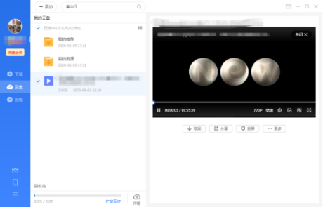 存储在云盘里的视频音频文件支持在线播放,视频播放流畅。在线播放器支持字幕、声音、画面、色彩、画质调节。