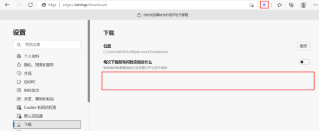 3. 进入 Edge 浏览器-->设置-->下载,缺少“下载开始时显示下载菜单”一项。