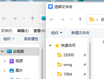 左侧此电脑是我已经修改过的,不显示快速访问,而右侧是迅雷的,不但显示快速访问,还显示最近访问过的文件夹,这里我已经清理过了,但是Win11还会随机固定最近访问过的路径,真是不安全,这个功能还关不了。我希望迅雷显示和左侧我修改的那样,不显示快速访问,这个快速访问一点用没有。我的盘很多,盘符都满了,每一次下载和访问的路径都不一样,所以这个快速访问功能对我一点用都没有。这个功能太烦人了。
