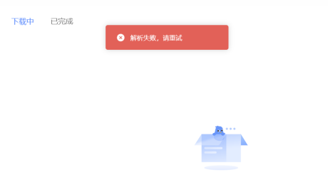 点击新建任务,粘贴下载连接之后,点击立即下载,出现“解析失败,请重试”的弹窗