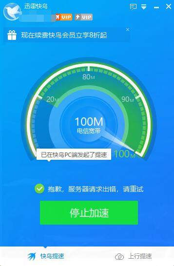 服务请求出错,实际没有提速效果,这是怎么回事