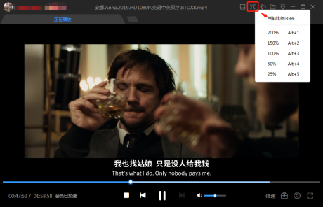 但是现在新版播放器的一倍,在视频全屏以后,选1x比例,原来1280*720分辨率的电影画面会覆盖全屏,要么就是画面的0.5倍,和以前的逻辑不一样了