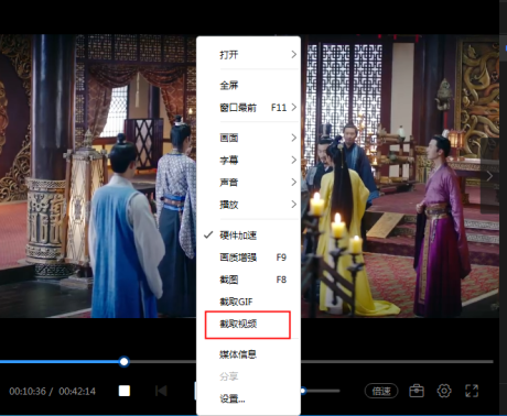 另外,迅雷影音6.1.6及之后的版本,右键菜单里面也有了“截取视频”选项
