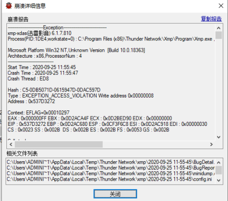 用迅雷影音启动任何视频都提示崩溃 这是截图 望客服人员帮忙解决一下