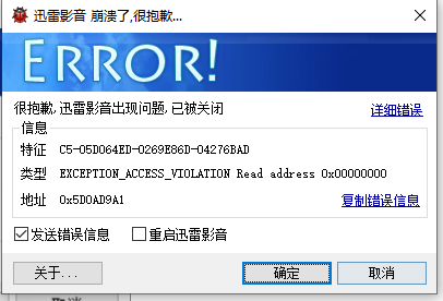 迅雷影音一直崩溃,卸载重装也没用